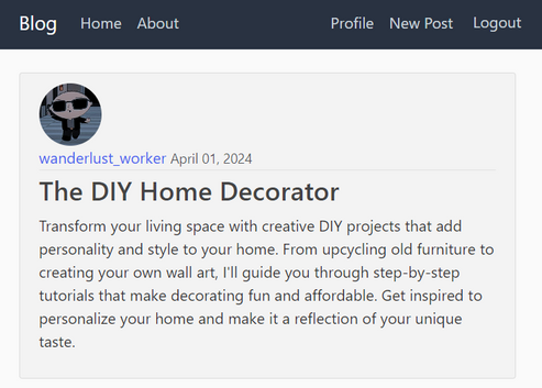Full-Featured website using Python, Django Framework and Bootstrap library. This site offers a full suit features including registration, secure login, password authentication, Profile for each user and the ability to create, manage and delete posts. Checkout the website link.